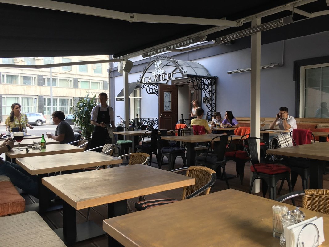 Когда за окном тепло, хочется больше бывать не в помещениях, а на улице. И не только чтобы погулять, но и встретиться с близкими и вкусно поесть. Именно поэтому у пивного ресторана Brasserie Lambic есть своя терраса с приятным видом.
